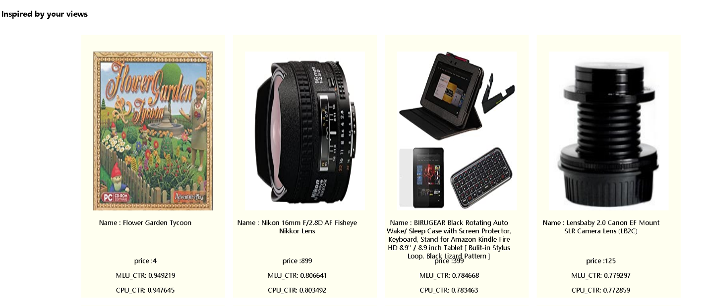 前端页面主要是用来和用户进行交互的,只要做到能够有效的展示推荐服务,并且可以有效的推荐商品。